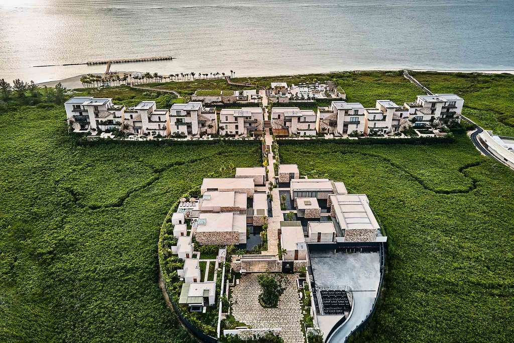 Consider the elements of Etéreo, an Auberge Resorts Collection address on the Riviera Maya of Mexico. Promoted as “a refuge for wellness seekers,” the property is built on stilts to maintain the healing environment of surrounding mangrove forests and has a light network of boardwalks and a bridge to connect guests to the beauty of the mangroves as they make their way to the beach, restaurants, or Mayan-inspired treatments of the spa. The minimally impactful design gives the hotel buildings the appearance of floating in the forest while inspiring the wellness guests seek.