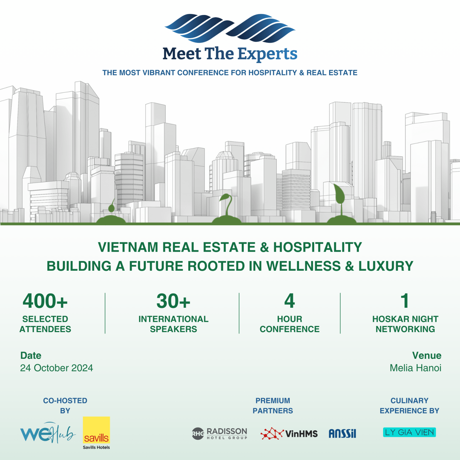 Renowned as one of the largest conference series for real estate and hospitality professionals in Vietnam and the region, MTE Hanoi 2024 will take place on October 24th at the Melia Hotel Hanoi. Hosted by Savills Hotels and supported by leading industry partners, the event is expected to attract more than 30 speakers from Vietnam and beyond, along with over 450 senior representatives from developers, hotel owners, architects, design consultants, project consultants, hotel operators, hotel general managers and industry experts.